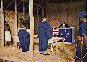 In 1961, the author took up an appointment as a Crown prosecutor in the Australian Territories of Papua and New Guinea. Most of his work was travelling as a circuit prosecutor with the Supreme Court to court towns on the northern and southern coasts, in the highlands, and to islands off the south coast of Papua. It was Australian government policy to bring the administration of civilised justice to the remotest corners of Papua and New Guinea. At over 270 scheduled "court towns", the local native people would assemble to watch the ceremonial opening of the Supreme Court on Circuit. The scarlet robed judge would inspect the native constabulary guard of honour, and then the court would open for business. The means of travel included "Catalina" PBY flying boat, Canadian-built De Havilland "Otter" and "Beaver" aircraft, single-engine Cessna aircraft, government trawlers, and small motor boats.