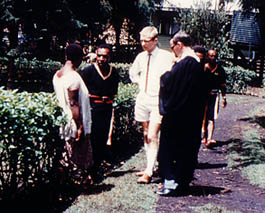 The seas around New Guinea could be equally dangerous and unpredictable during the cyclone (hurricane) season. After an uneventful trawler voyage across a glassy emerald sea to the glorious Trobriand Islands in 1965, the court party was returning to the mainland when its small craft ran into an unheralded cyclone after clearing Goodenough Island. The native skipper called down to the judge that the sea was becoming too rough to continue and that he would have to turn back to the shelter of Goodenough Island which now lay about three kilometres behind us.