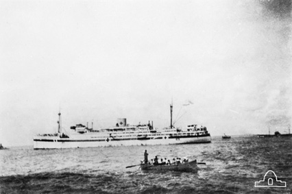 first Japanese air raid on Darwin. Survivors of the raid are manning the lifeboat.